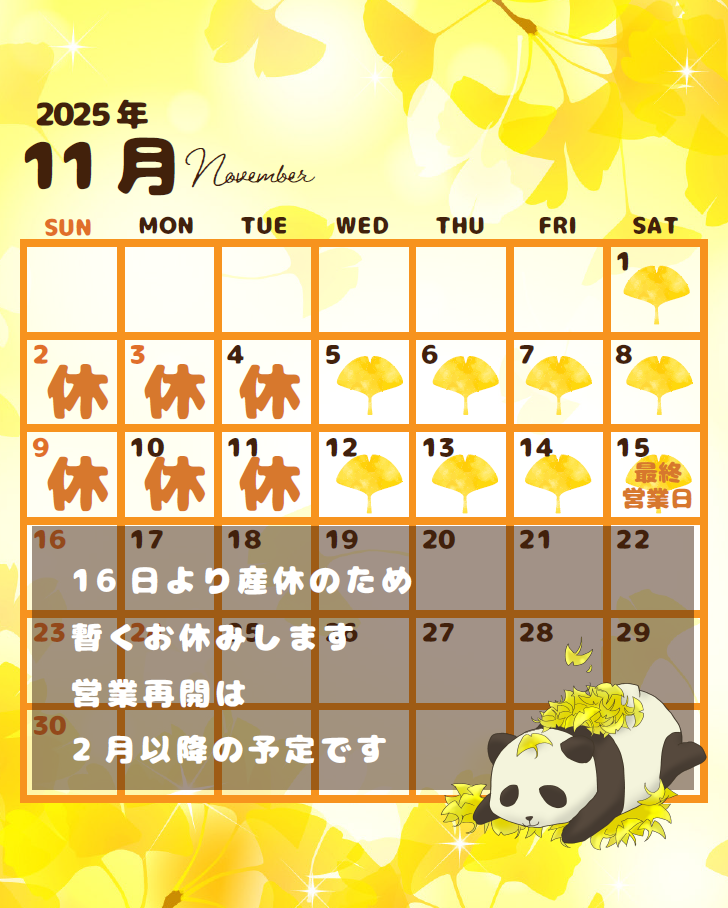 私事で大変恐縮ではございますが、12月に出産予定のため、11月16日から産休を頂きます。